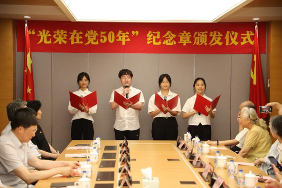 2021年起,党中央将颁发“光荣在党50年”纪念章作为一项经常性工作。四年来,学校累计共有251人获颁“光荣在党50年”纪念章,本年度共有33名老党员获颁。除举行集中颁发仪式外,学校党委还将结合相关工作陆续为“光荣在党50年”的老党员颁发纪念章。