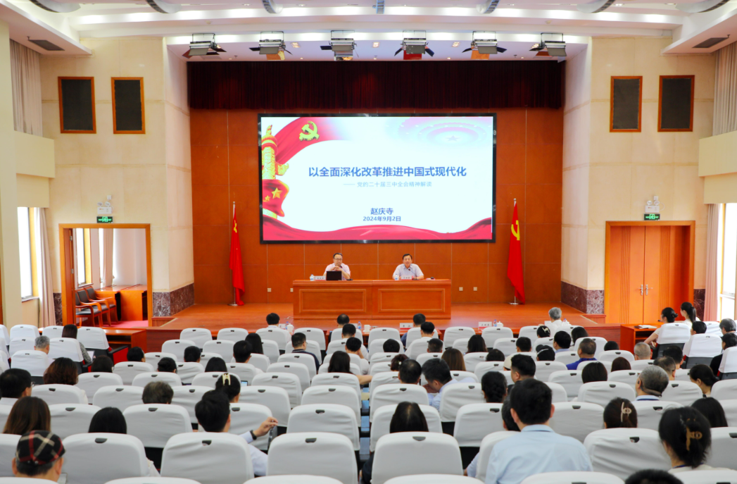赵庆寺教授通过回顾全面深化改革以来的主要成就,指出党的二十届三中全会的要求既是党的十八届三中全会以来全面深化改革的实践续篇,也是新征程推进中国式现代化的时代新篇。报告主要从重大意义和总体要求、系统部署和具体措施、加强党对改革的领导三方面逐章逐条地对进一步全面深化改革、推进中国式现代化的主要内容进行了深入浅出的解读。赵庆寺教授的报告提纲挈领、重点突出,对我们全面深入系统地学习党的二十届三中全会精神具有十分重要的帮助。