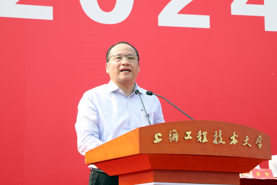 俞涛校长寄语全体2024级新生。他表示,上工程始终以产教融合的特色模式,以追求卓越的精神品格,以立德树人的使命担当,扎根行业产业,勇攀教育高峰,引领人才成才。他勉励同学们要学会选择、学会学习、学会生活,心怀“梦摘星”,不惧“上青天”,终能“射玉衡”,成为灿若星辰的程园人。