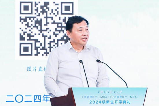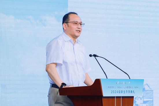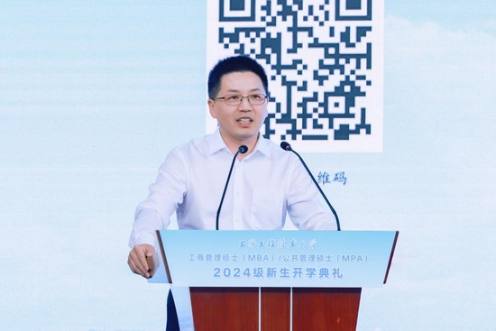 管理学院院长、MBA/MPA 教育中心主任胡斌介绍了管理学院、MBA/MPA项目的发展情况和最新进展,勉励新生运用上工程学习资源,实现自我跨越。