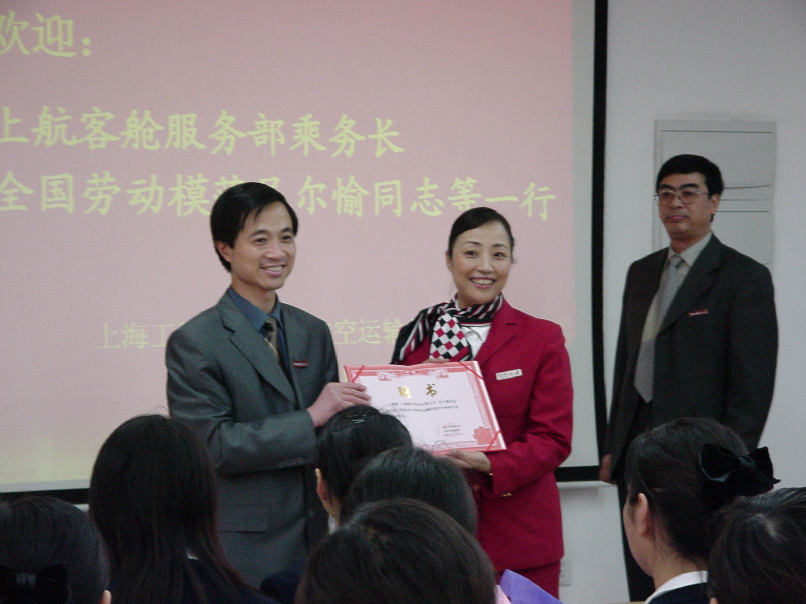 上航客舱服务部与航院空乘专业互动交流――全国劳模吴尔愉同志受聘为航院校外辅导员