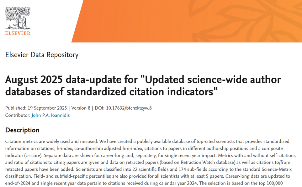 2025年度全球前2%顶尖科学家榜单发布,我校多位学者入选!