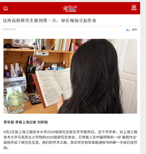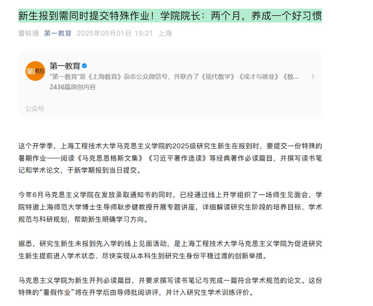 未报到先学习:沪上这所高校研究生新生报到需同时提交一份特殊作业