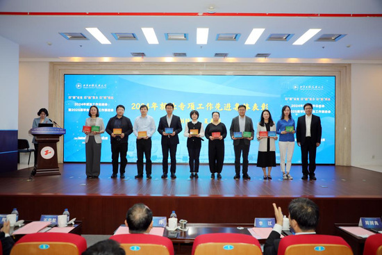 校党委副书记、副校长徐阳为荣获2024年学校就业工作先进个人的教师代表颁奖。
