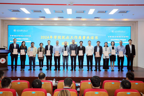 “稳就业”“保就业”事关国家战略发展与和谐稳定,事关学校长远发展与社会评价,事关学生前途命运与人生方向,为明确工作任务、压实工作责任、切实做好2025届毕业生就业工作,李江书记向各学院负责人颁发了2025年就业工作质量承诺书。