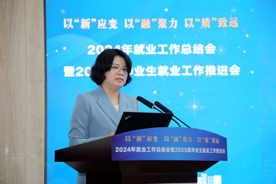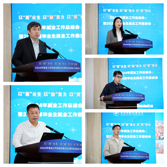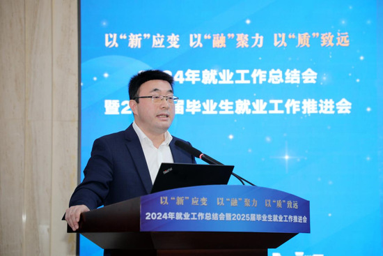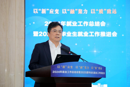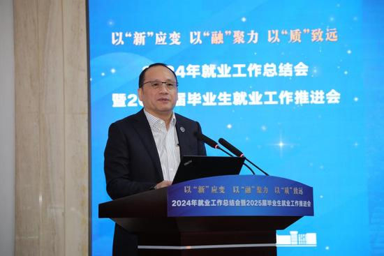 俞涛校长向长期以来关心和支持学校教育事业发展的政府部门、合作伙伴表示感谢,对各部门、各学院在就业工作中的辛勤付出表示肯定。他要求全校上下:要以“新”应变,锻造复合型核心能力,紧握“新”职业发展引擎;要以“融”聚力,响应国家战略筑平台,政校会企携手添动力;要以“质”致远,加快创新型人才培养,赋能新质生产力发展。
