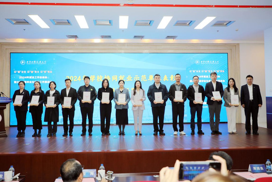 副校长王岩松为长期关心、支持学校就业工作的上海市就业促进中心、上海市工商业联合会、G60科创走廊联席办、松江区工商业联合会、松江区人力资源和社会保障局等17家单位颁发了2024年学校就业工作特别贡献奖;为中国东方航空股份有限公司、宝山钢铁股份有限公司、上海电气集团股份有限公司等15家企业颁发了2024年学校协同就业示范单位奖。