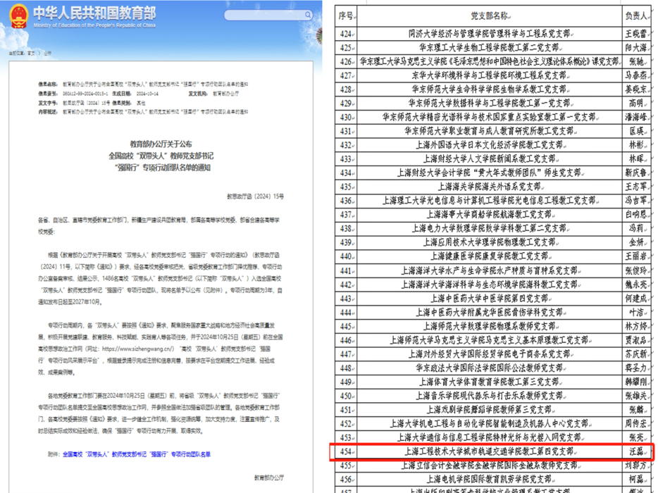 学院党委聚焦基层党建任务,提升党组织建设质量。以建设上海党建工作标杆院系为契机,充分发挥全国党建工作样板党支部的示范引领作用,全面推行“一支部一品牌”建设。2024年度,教工第四党支部获批全国高校“双带头人”教师党支部书记“强国行”专项行动团队项目1项。
