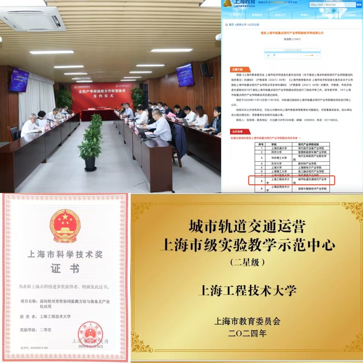 学院深化城市轨道交通现代产业学院建设,圆满完成现代产业学院规划建设任务及阶段性的发展目标,顺利通过市级实验教学示范中心认定,获得二星级评价;学院先后赴申通集团人力资源部、党建工作部、技术中心、教培中心等多家单位开展交流研讨13次;召开上海申通地铁集团有限公司城市轨道交通现代产业学院第二次理事会,并签订新一轮产学研战略合作框架协议;制定产业学院章程及6项配套制度文件,为校企合作提供了坚实的制度保障。