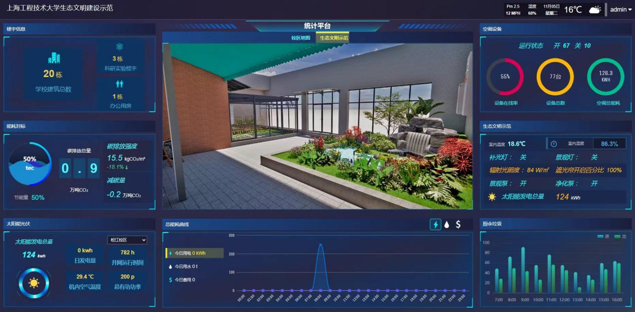 大力开展数智节能建设。学生公寓40块智能水表接入校能耗管理平台,实现实时监控,及时发现漏水点。体育馆、图书馆、产教融合大楼内595台空调接入校能耗管理平台,实现远程监管。更换高效节能的LED灯具,升级四期学生公寓路灯控制系统,实现定时开关和智能调控。