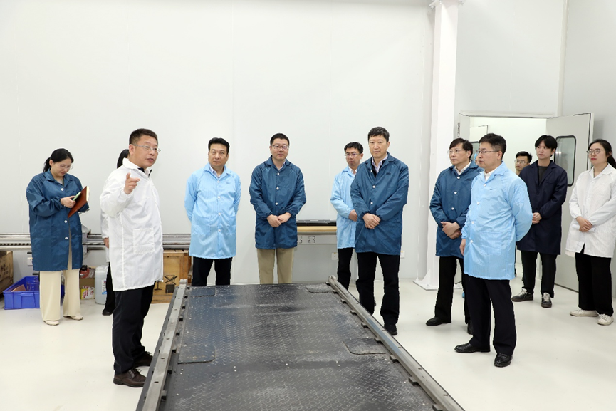 在材料科学与工程学院大型仪器设备安装使用现场,校领导重点调研了大空间电子束送丝增材制造及高精密加工系统、超快激光制造系统两大核心科研设备的建设和运行情况,旨在全面了解该项目的安全评估情况、运行及共享情况,以及前沿制造技术在高校科研体系中的建设与成果转化情况。