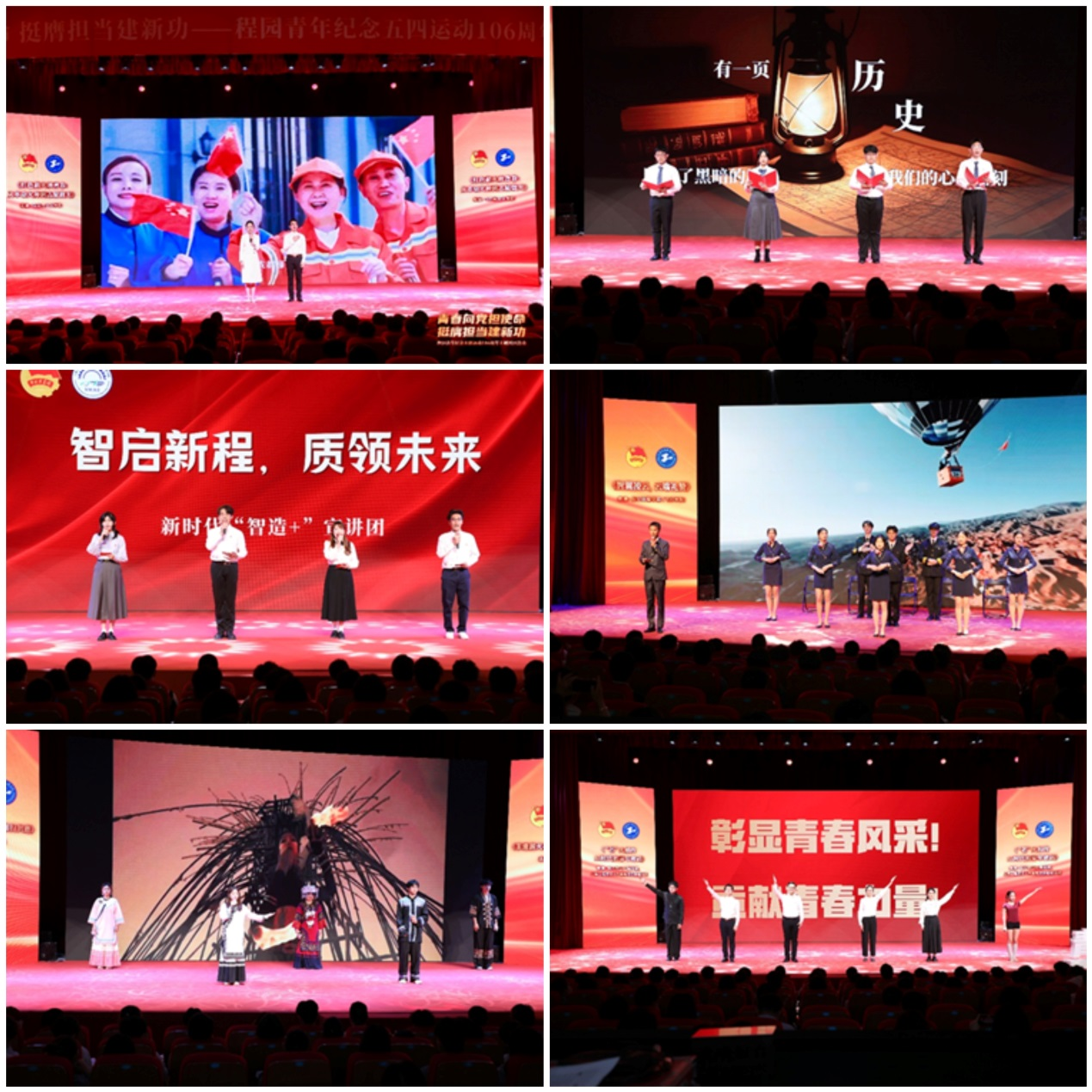 整场活动分为“青春铸魂 勇赴‘复兴之约’”“青春领航 勇闯‘奋进之路’”“青春赋能 勇担‘时代之任’”三个篇章,机汽学院、电气学院、管理学院、材料学院、航飞学院、轨道学院、高职学院、马院、泗泾附校的青少年代表及团队进行了青春演讲,表演了情景剧等,他们以饱满的精神,继承和发扬五四精神,以实际行动奋力书写为中国式现代化挺膺担当的青春篇章。与会青年们齐唱团歌,活动在隆重热烈的气氛中落下帷幕。
