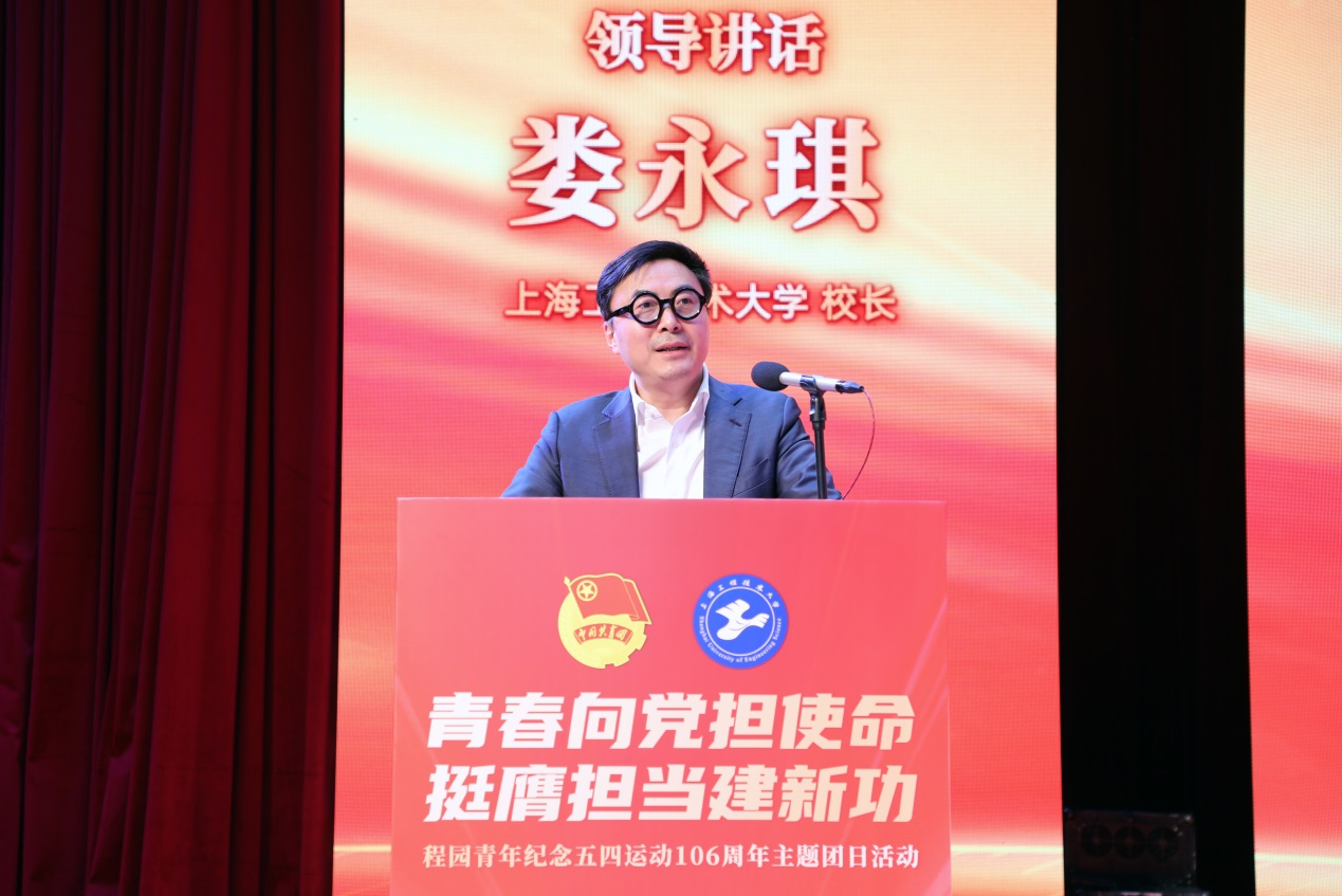 娄永琪向工程大全体青年朋友致以诚挚的问候!向受到表彰的先进集体和先进个人表示热烈的祝贺!向学校各级团组织和全体青年为学校事业发展作出的积极贡献,向团市委长期以来对工程大共青团工作的支持表示衷心的感谢!他寄语全体工程大青年敢想、敢干、能干,和学校一起成长,在学习中找方向,在实践中出成果,在合作中拓宽视野,在变化中保持热爱。
