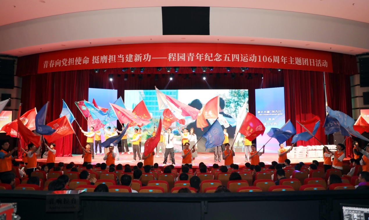 5月7日上午,“青春向党担使命 挺膺担当建新功”程园青年纪念五四运动106周年主题团日活动在图文信息中心志宏堂举行。校长娄永琪,团市委挂职副书记唐志宇,校党委副书记朱晓青,党委副书记、纪委书记孟星,党委副书记、副校长徐阳出席活动。学校相关职能部处负责人,各二级学院党委书记、副书记,程园青年代表共计500余人现场参会,累计超万余人次通过“工程大青年”视频号直播在线观看,程园青年共赴青春“大思政课”,主题团日在雄壮的国歌声中拉开序幕。