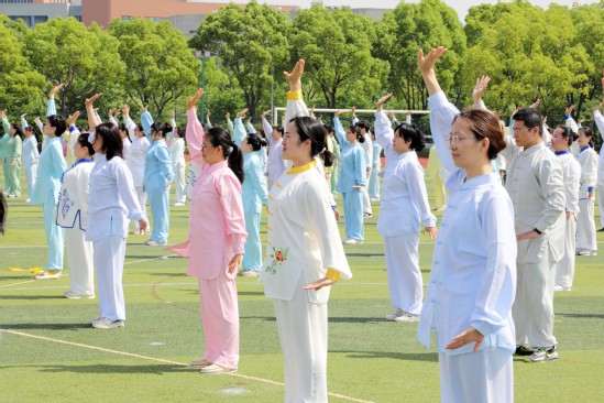 开幕式体育节目展演环节精彩纷呈:传统舞龙表演《中国龙》以点睛仪式点燃全场热情。400名排舞专项班的女生用活力四射的排舞《来吧,冠军!》演绎着运动场上独有的中国风采。教职工八段锦展演的招式里,藏着教案批注的韧劲与三尺讲台的气度。大型团体操《我们创造》,让四十六载的“程园精神”在幻化光谱中完美呈现。