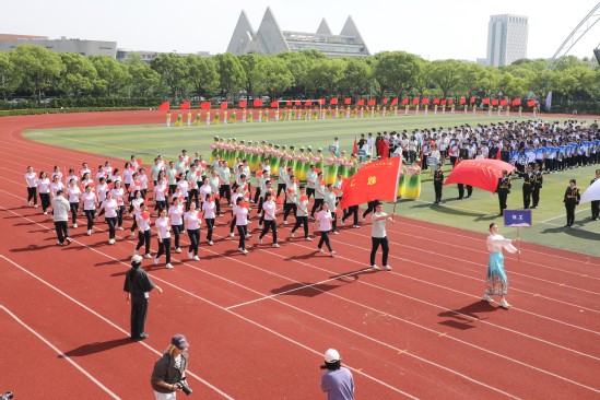 伴着激昂的音乐,迈着矫健的步伐,各二级学院师生运动员代表身着不同颜色的服装,在国旗、校旗、鲜花等方阵之后依次入场。