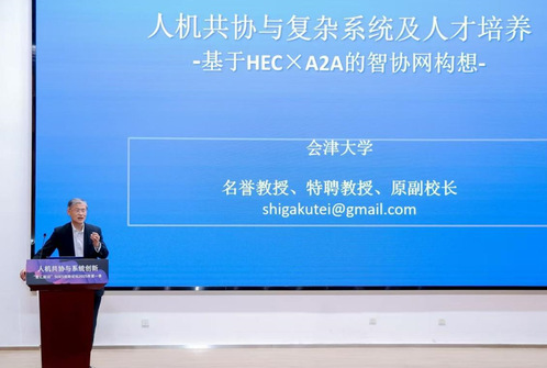 日本会津大学程子学教授作了“人机共协与复杂系统及人才培养——基于HEC×A2A的智协网构想”的主旨报告。