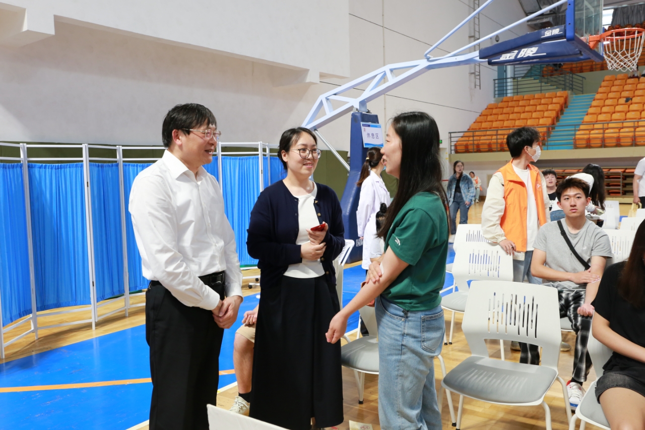 5月28日至6月4日,学校顺利开展2025年无偿献血活动,1228名师生积极响应号召,用滚烫热血谱写大爱篇章。活动期间,校党委书记李江,校长娄永琪,党委副书记朱晓青,党委副书记、纪委书记孟星,党委副书记、副校长徐阳,副校长王岩松,先后前往松江校区献血现场慰问献血师生。党委办公室、校长办公室、工会、机关党委、后发中心及相关学院负责人陪同慰问。