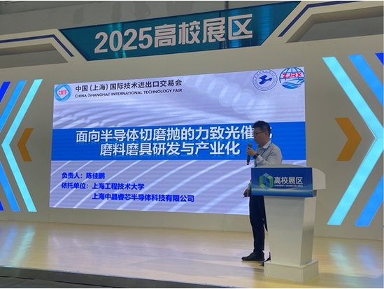 在“创智汇”项目路演环节,化学化工学院江振林老师展示了“面向半导体切磨抛的力致光催化磨料磨具研发与产业化”项目。该项目聚焦半导体领域“卡脖子”技术难题,吸引了众多投资人和技术需求企业的关注,多家企业表达了初步合作意向。