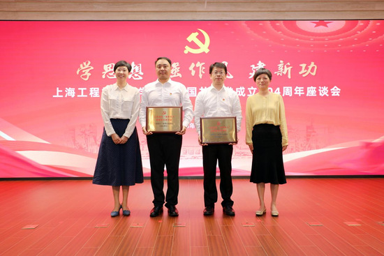 松江区委组织部副部长、人才局局长吕颖群,松江区委社会工作部部长、区“两新”工委书记费薇为荣获全国和上海市高校“双带头人”教师党支部书记、“强国行”专项行动团队授牌。