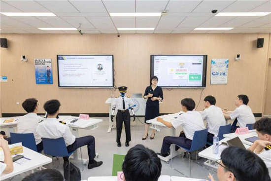 记者从校方获悉,在这一创新课堂形态中,授课教师、机器助教、行业导师三方各展所长、协同赋能——教师作为教学设计师与引导者,深度把控教学节奏与认知建构过程;机器人“小C”作为智能助教,承担如模拟空管通话、句型操练、实时反馈等教学任务,有效释放教师创造力。同时,课堂还通过实时连线航空企业的资深机长,作为行业导师与学生实时互动交流,将一线实践场景“搬”进课堂,真正实现“课堂与驾驶舱的无缝对接”,也构建出“虚实融合、人机协同、产教互通”的新型教学场域,体现“以学生为中心、以能力为导向、以智能为支撑”的现代化教学理念。