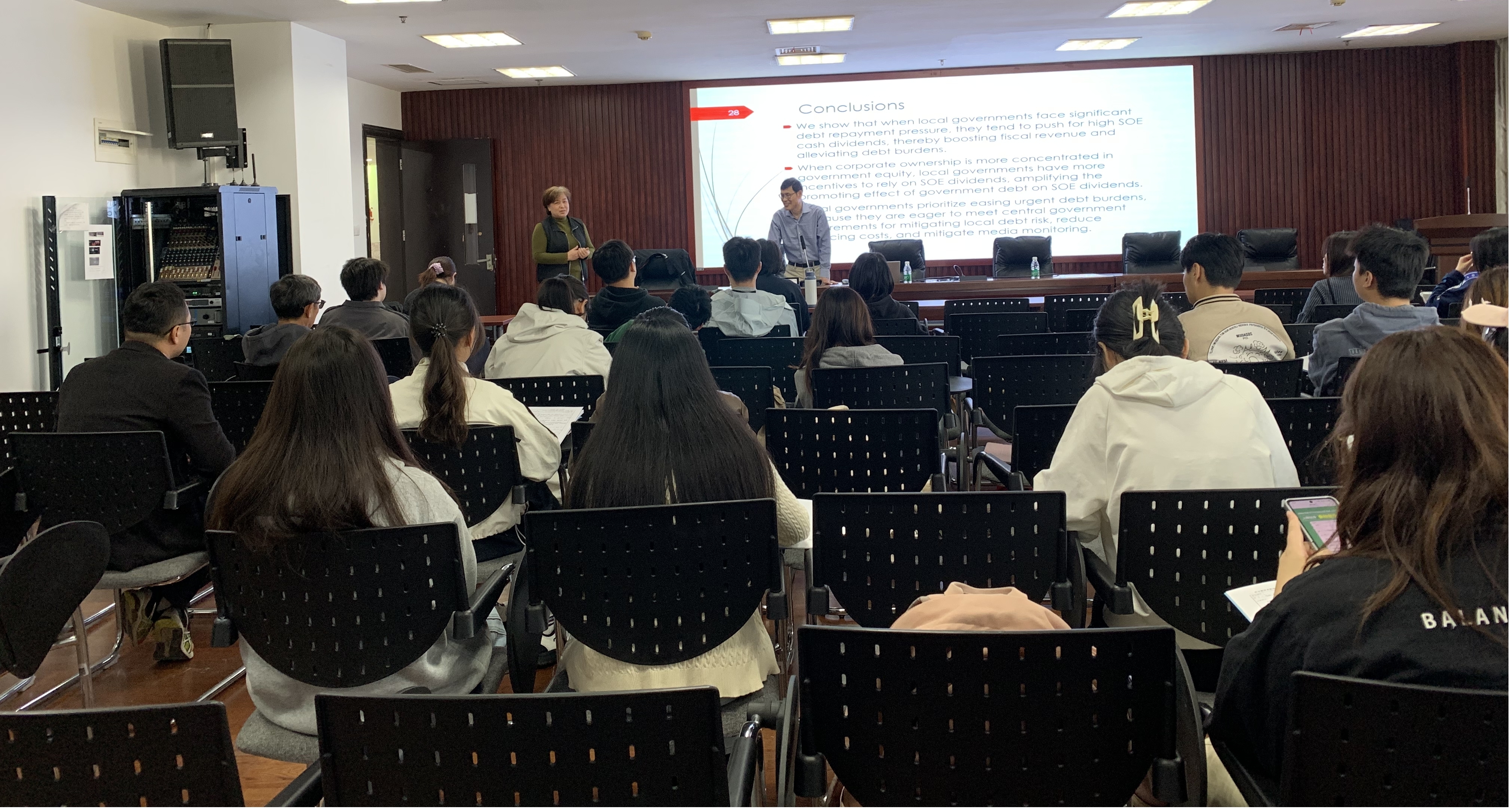 讲座现场学术氛围浓厚,师生沉浸其中。在互动环节,大家就模型设定、变量选取等问题与安教授进行了深入交流。本次讲座不仅拓展了师生的研究视野,也提升了我校金融与管理学科的国际化水平。