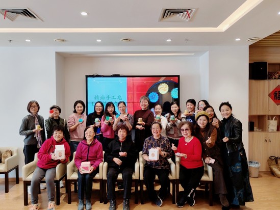 活动现场,精油的淡雅香气弥漫四周。在专业老师的指导下,大家围坐桌前,闭目凝神,感受着柑橘和薄荷精油带来的舒心时刻。手工体验环节,大家眼神专注,小心翼翼地调配皂液、倒入模具。香薰沙画制作过程中,细腻的彩沙在指尖与香气交织中勾勒出灵动的图案。欢声笑语中,操作台上的皂液渐渐凝固成温润的形状,沙画盘里也绽放出一幅幅充满巧思的作品,老同志与年轻同志互帮互助的身影成为现场动人的风景。