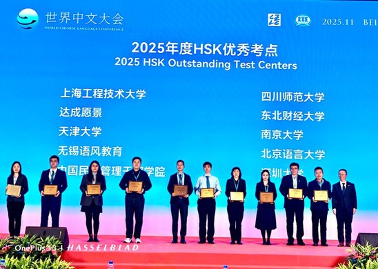 11月14日—16日,世界中文大会于北京举行。大会期间,汉考国际举行了“中文水平考试(HSK)全球合作伙伴大会”及年度颁奖典礼,对全球范围内在中文考试推广与服务保障方面表现突出的机构予以表彰。凭借在考务组织、服务质量与品牌建设方面的持续提升,我校再次从众多单位中脱颖而出,成功蝉联“2025年度HSK优秀考点”称号。