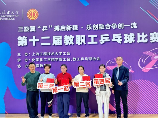 11月14日下午,学校第十二届教职工乒乓球比赛在松江校区体育馆激情开拍。本次赛事由校工会主办,化学化工学院、教职工乒乓球协会承办,校体育部协办,吸引了来自全校60余名教职工运动员同场竞技,共同奉献了一场精彩纷呈、友谊与竞技并存的文化体育盛宴。校党委副书记、工会主席朱晓青,校工会常务副主席、妇工委常务副主任李霞,化学化工学院院长李亚、体育部党委书记李杨、体育部主任张建新出席开幕式。开幕式由化学化工学院党委书记宋勤健主持。