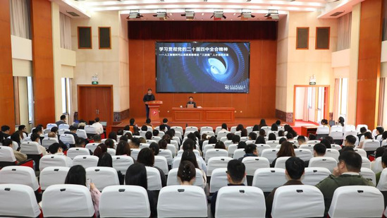 为深入学习贯彻党的二十届四中全会精神,抢抓人工智能时代教育变革机遇,落实学校新时期发展战略部署,11月20日上午,校党委副书记、副校长徐阳为全体学工队伍及学生代表开展“学习贯彻党的二十届四中全会精神——人工智能时代以系统思维推动‘三旋翼’人才培养改革”的专题培训。培训由学生工作部(处)长、研究生工作部部长吕宁主持。