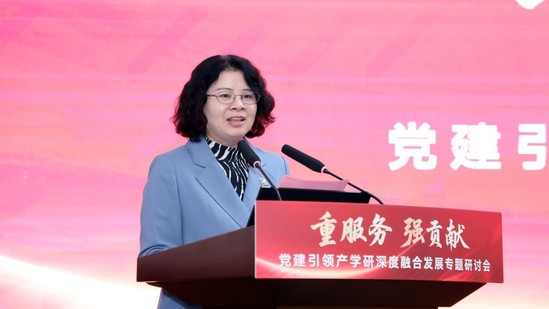 朱晓青向长期以来关心指导、支持帮助学校发展的领导、专家和企业家朋友表示衷心的感谢。她指出,学校党委高度重视党建工作与产学研融合发展,聚焦“重服务、强贡献”,精准对接上海“3+6”产业布局和松江各产业集群发展需求,以“党建共建、人才共育、创新共进、发展共谋”推动学校服务区域经济社会发展。站在新的历史条件下,学校党委以上海工业(产业)台柱子为使命,以“工程-管理-设计”“三旋翼”整合创新为策略,建设产业特色鲜明,世界一流的应用创新型大学。希望通过本次研讨会,在党建引领下进一步深化合作、凝聚合力,为推动区域经济社会高质量发展作出新的更大贡献!