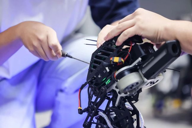 不能就这么算了!时任社长把这块焦黑的板子往工作台一拍,它就是我们的新起点。那一周,实验室成了不夜城。社长带着社员们拆解了先驱一号的老旧零件,从报废库里翻找可用的芯片,用飞线一点点重建电路。没有专业检测设备,就用最笨的办法,一个节点一个节点地测试。困了就在工作台小憩,醒来继续奋战。当英雄机器人带着这块修补痕迹明显的心脏重新站上赛场,并最终完成挑战时,大家拥抱在一起,泪流满面。