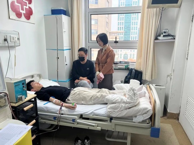 校党委副书记、副校长徐阳代表学校看望慰问陈一一及其家人。他详细了解了陈一一的身体反应及后续采集流程,并转达了学校对其大爱之举的由衷敬意。他赞扬陈一一用善行诠释青年担当,强调学校将全程做其后援团,在学习、生活、康复等方面提供全方位支持,让其无后顾之忧。
