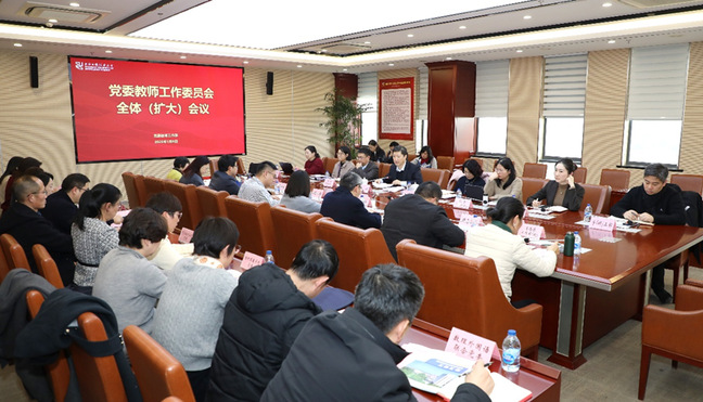1月8日下午,学校党委教师工作委员会全体(扩大)会议在松江校区召开。校党委书记、党委教师工作委员会主任李江,党委副书记、党委教师工作委员会副主任朱晓青,党委教师工作委员会全体成员出席会议,各二级党组织书记列席会议。会议由朱晓青主持。