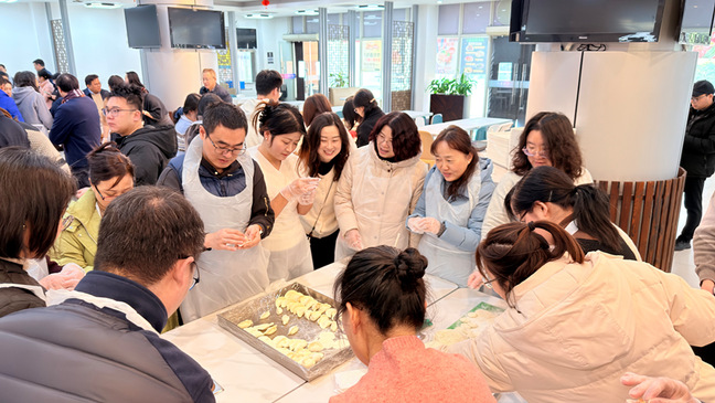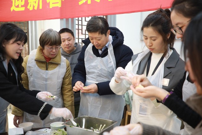中午11时许,第二餐厅内热闹非凡,校领导与机关部门教职工代表齐聚一堂,开展新春联谊包饺子活动。餐桌上,面粉、馅料等食材摆放整齐,大家分工协作、默契配合,擀皮、包馅、捏形,动作娴熟流畅。校领导与教职工们围坐在一起,一边包饺子一边拉家常,分享工作感悟、畅谈新年期许,现场洋溢着的温暖与团圆的喜悦。一个个形态各异的饺子承载着大家对新春的美好憧憬,一碗碗热气腾腾的饺子传递着学校对教职工的关怀与问候,让每一位参与者都感受到了程园大家庭的温暖。