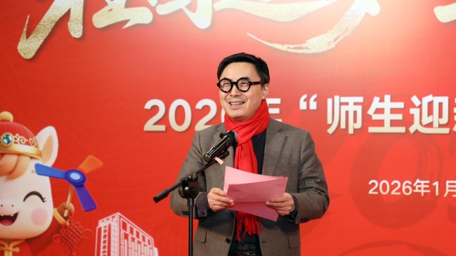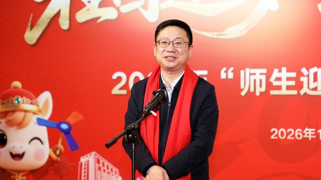 娄永琪代表学校向莅临指导的市教委领导及全体师生致以新春祝福。他介绍了学校2025年里程碑式的发展成就,指出学校正坚定按照一年调姿、三年入轨、十年建成的路径,全力创建具有鲜明产业特色的世界一流应用创新型大学。2026年,学校将坚持重服务强贡献,深化人才培养改革,优化校园服务保障,推动各项战略目标落地,增加全校师生的获得感和幸福感,在奔向世界一流的征程中,跑出上工程人的风采。