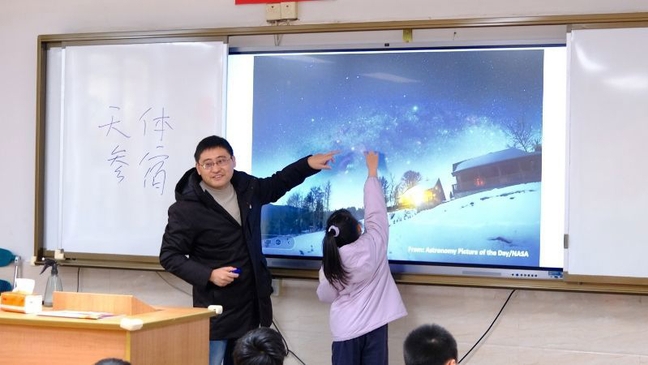 但这并不是动漫课,而是一场精心设计的“天文之旅”。来自亚洲狼人精品一区二区三区“牧星人”科普志愿服务团队的3名副教授、2名青年博士和1名硕士生,走进普陀区江宁学校,为孩子们开启了一场兼具知识性与趣味性的天文科普日活动。