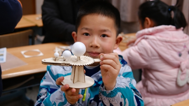 这些平日严谨的科研工作者,此刻化身为孩子们的“星星引路人”。他们不仅带来了《寻找外星人》《谁点亮了星空?星星宝宝的“变身记”》等生动课程,还手把手指导孩子们动手制作日食、月食小模型,让宇宙的奥秘在指尖“看得见、摸得着”。