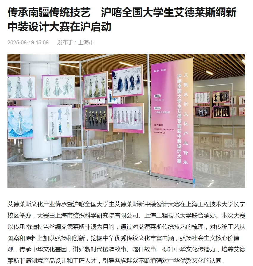 传承南疆传统技艺 沪喀全国大学生艾德莱斯绸新中装设计大赛启动