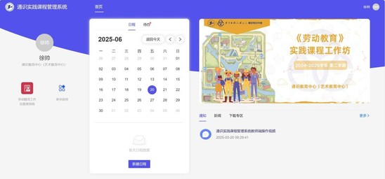 中心自主开发的《通识实践课程管理系统》,实现了工作坊申报、选课、成果录入、成绩发布等全流程数字化管理。2024-2025学年第二学期,系统使用次数已突破20000次。该系统与教学管理系统无缝对接,劳动实践成绩实时同步。自2025-2026学年第一学期起,理论教学部分将引入优质线上资源,实现全线数字化转型,进一步提升教学效率与资源覆盖。