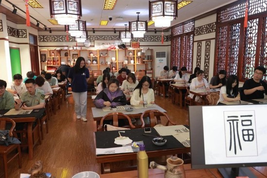 通识教育中心积极拓展校外资源,将劳育与美育有机融合,与上海交通大学 “中国书法文化国际传播研究所”共建教学实践基地,邀请上海交通大学人文学院长聘二级教授、博士生导师周斌,为学生开设《中国书法审美技法与文化交流工作坊》,引导学生通过“翰墨劳动”,深刻感悟中华文明的精神底蕴。