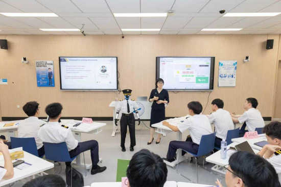 在这堂“飞行专业英语(口语)”课上,人形机器人“小C”用地道的英语为学生示范航空术语的标准读法,并通过情景模拟功能,重现塔台通话、机组协同等真实航空场景。