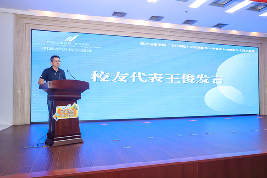 “航班”的“总工程师”、上海市劳动模范王俊校友,为新生讲授了航空人职业素养的“第一课”。他与新生分享了自己20年民航生涯的经验:现实工作中遇到的问题“从不按学科分界而来”,行业迫切需要的是能够践行“敬畏生命、敬畏规章、敬畏职责”的新航空人,并能将勤奋、求是、创新、奉献融入职业品格的复合型人才。