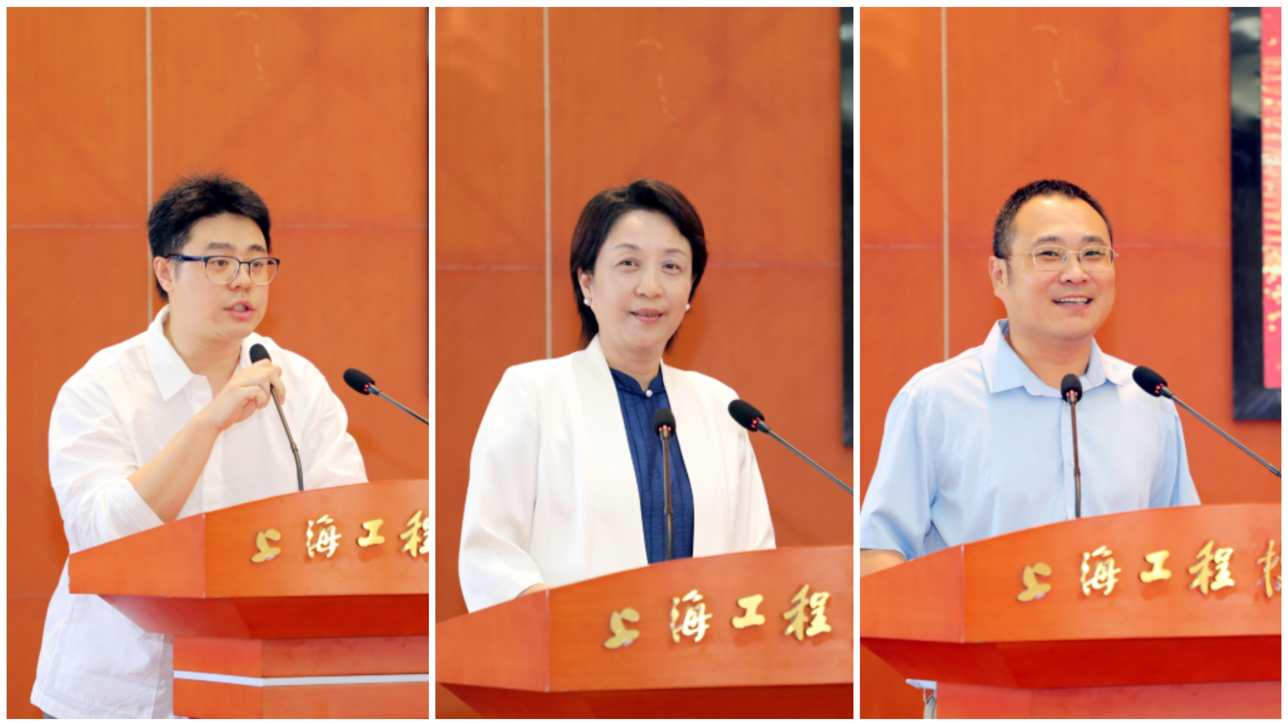 机械与汽车工程学院党委书记虞蓉、人机与环境工程技术研究中心团队成员商逸澹、城市轨道交通学院户国分享了各自对教育家精神的理解与实践,展现了上工程人矢志拼搏的智慧与力量。