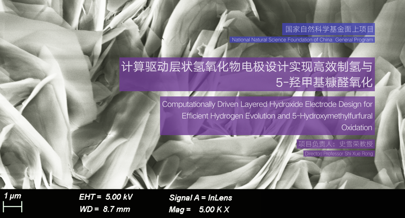 史雪荣教授主持国家自然科学基金面上项目: 计算驱动层状氢氧化物电极设计实现高效制氢与5-羟甲基糠醛氧化