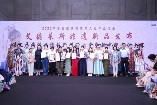 第三届海派旗袍创新设计大赛暨艾德莱斯新中装设计大赛以全球邀约场景新生为核心,延续生活旗袍、职业旗袍、礼服旗袍三大创作维度。青年设计师以创意使非遗服饰从“仪式标签”,成为日常穿搭的文化表达。艾德莱斯非遗新品发布环节以“丝路活化石的当代重生” 为主题,纺研院及丝绸集团发言人在发布中表示:“艾德莱斯非遗的产业化发展,是沪喀文化交流的重要成果。我们通过工艺改良与设计创新,让这一‘21 世纪最后的手工业’真正走进现代生活。”