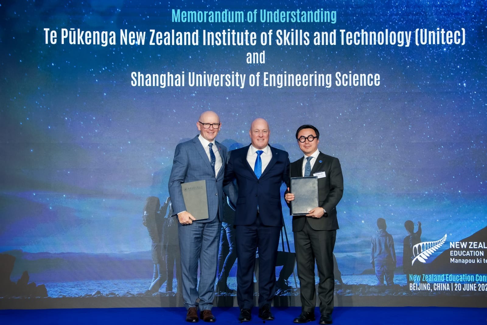 新西兰总理克里斯托弗·拉克森亲临活动现场并发表讲话。拉克森对中新两国在教育领域的友好交流与合作成果给予高度评价,明确表达了愿与中方秉持相互尊重、相互理解的原则,进一步深化旅游、教育等领域人文交流,推动两国关系迈向新高度的积极意愿。