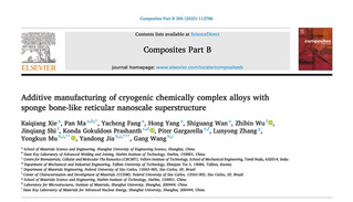 近日,材料科学与工程学院马盼教授联合上海大学贾延东研究员、穆永坤副研究员指导研究生谢凯强、方亚成在中科院一区期刊《Composites Part B: Engineering》(2025,306: 112786,IF=14.2)上发表了题为“Additive manufacturing of cryogenic chemically complex alloys with sponge bone-like reticular nanoscale superstructure”的研究论文。针对低温环境下材料机械性能下降的科学难题,本研究基于增材制造(粉末床熔融)技术,结合后续时效处理,开发出一种具有类似海绵骨的网状纳米级超结构化学复杂合金(CCA),该合金由L12 有序面心立方纳米沉淀物、L21 有序体心立方纳米沉淀物和高密度位错组成。研究发现,室温下的变形主要由位错滑移主导,而在低温下,位错与沉淀物的相互作用以及纳米孪晶的形成增强了强度与延展性的协同作用。该工作不仅深化了对高熵合金构效协同机制的认知,并为通过增材制造设计适用于极端环境的高性能材料开辟了新途径。马盼教授指导的研究生方亚成