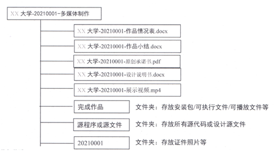 (5)所有电子版提交内容保存在以“学校-参赛编号-作品类别(8选1)”命名的文件夹中,并上传至百度云,创建私密链接(永久有效)后提交链接地址和密码。百度云上的目录结构及提交的文件应为: