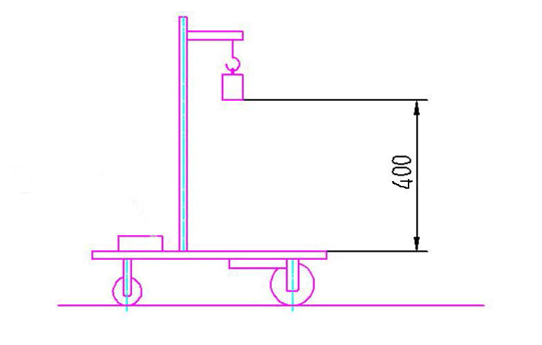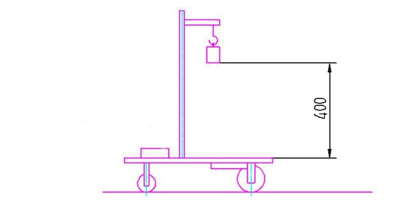 小车行进所需能量:只能来自给定的重力势能,小车出发初始势能为400mm高度×1Kg砝码质量,竞赛时使用同一规格标准砝码(钢制¢50×65mm)。若使用机械控制转向或刹车,其能量也需来自上述给定的重力势能。
